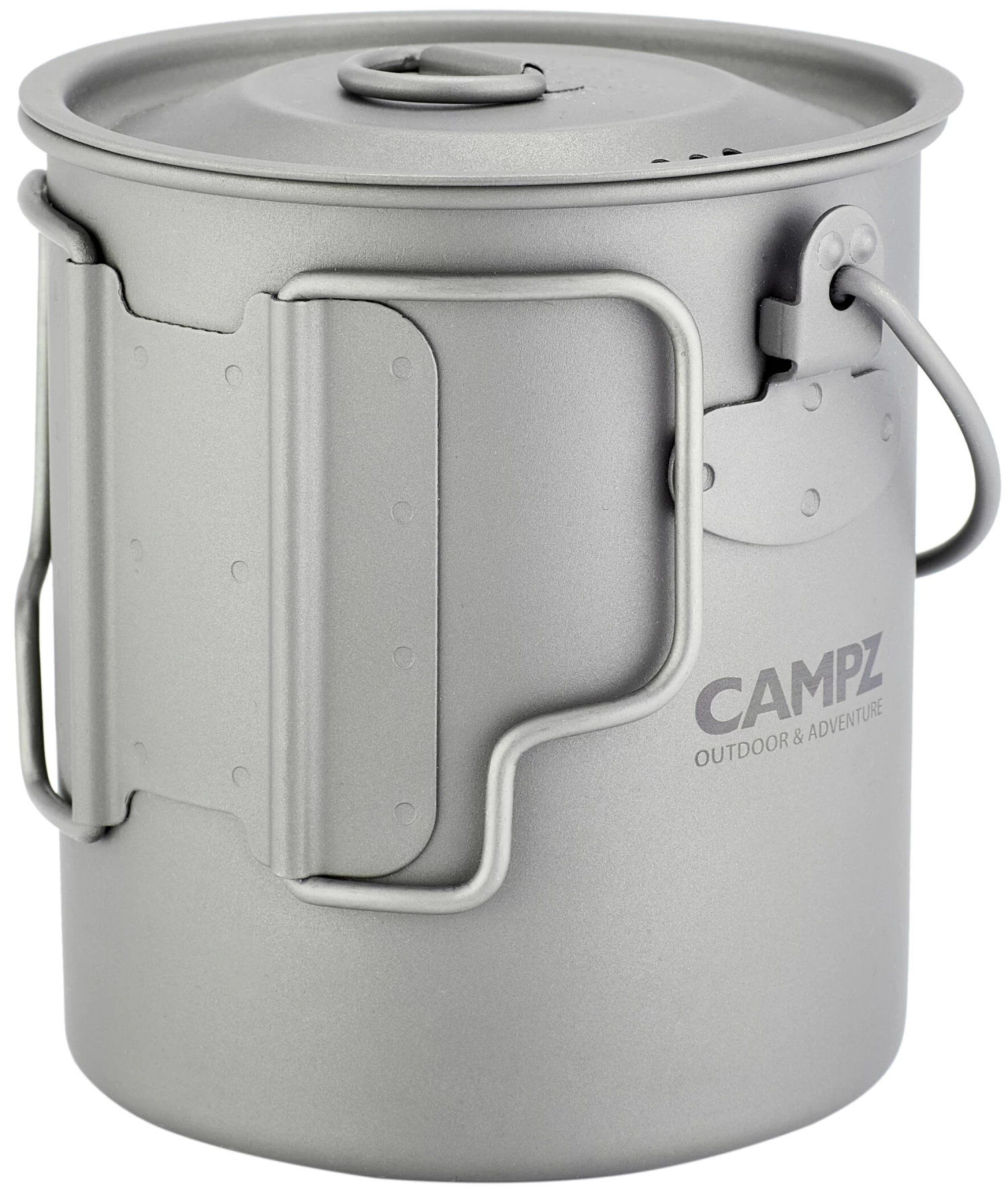 Titanium pot met 750 ml inhoud met praktisch handvat voor transport en om aan op te hangen.