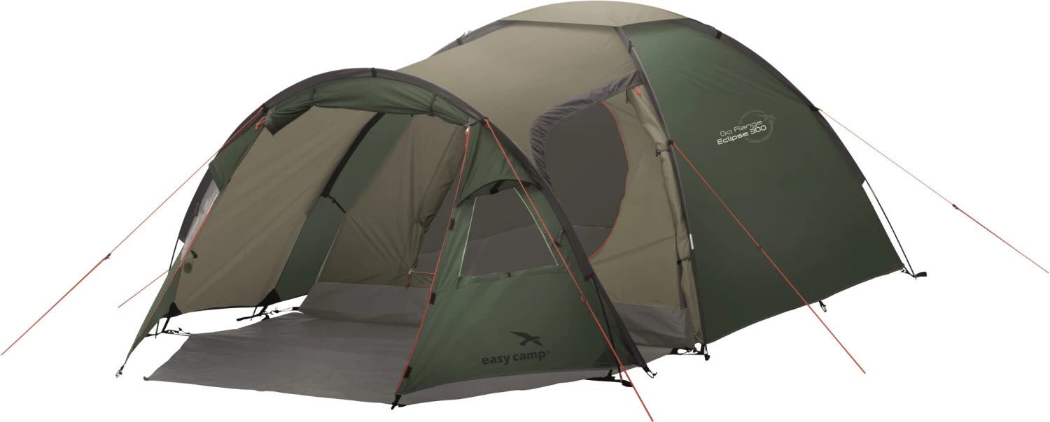 Bij de Eclipse 300 wordt de buitentent eerst opgezet. Deze koepeltent heeft een derde boogstok die een grote verlengde vestibule creëert aan de voorkant van de hoofdtent. Deze handige leefruimte heeft een tentvloer en veel bergruimte voor essentiële buitenspullen. Daarom is de tent ook geschikt voor tochten met de motorfiets. De tent heeft een vooringang en een zijdeur. Twee ramen en de bijbehorende ventilatieopeningen zorgen voor de beste lichtinval en optimale luchtcirculatie in de vestibule. De grote Eclipse 300 is de perfecte oplossing voor kampeerders die met een kleine auto rondreizen en ruimte nodig hebben voor een beetje luxe.