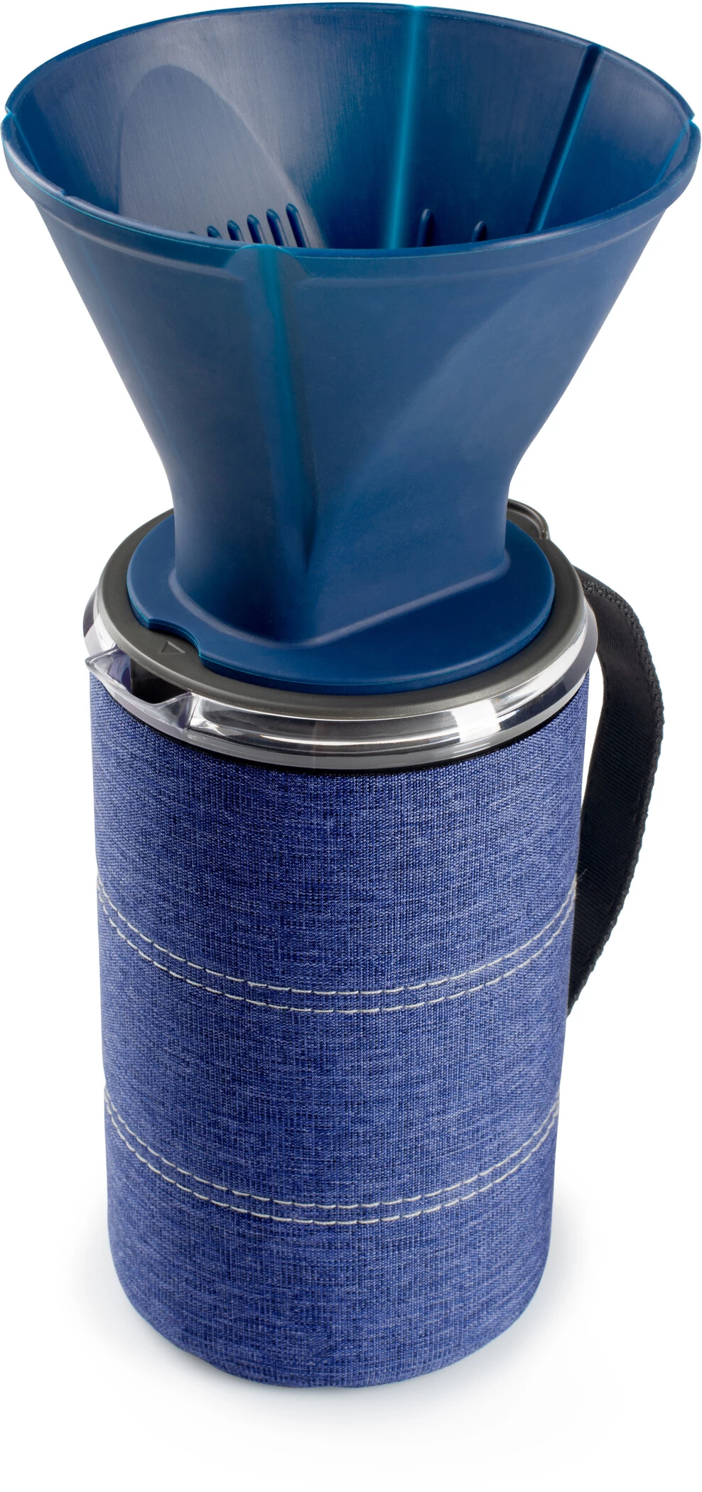 Het dubbelwandige, geïsoleerde deksel en de rePET-verpakking houden de temperatuur tijdens het brouwen en serveren op peil.De siliconen druppelkegel klikt tijdens het brouwen vast in het deksel en blijft rechtop staan als hij wordt verwijderd om morsen te voorkomen