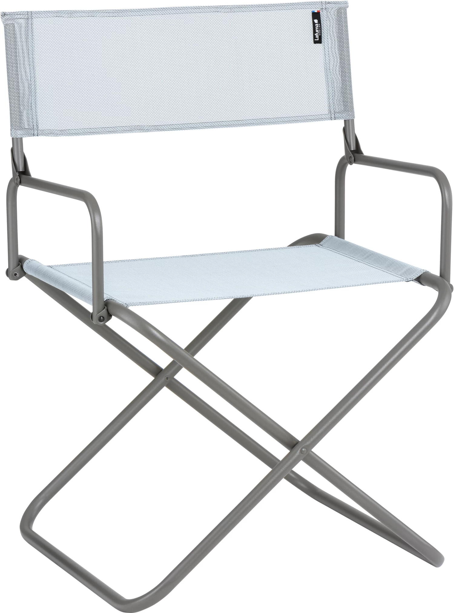 The large folding director’s chair FGX XL by Lafuma has a frame made of painted steel tubes and is equipped with a seam-reinforced and UV-resistant cover.