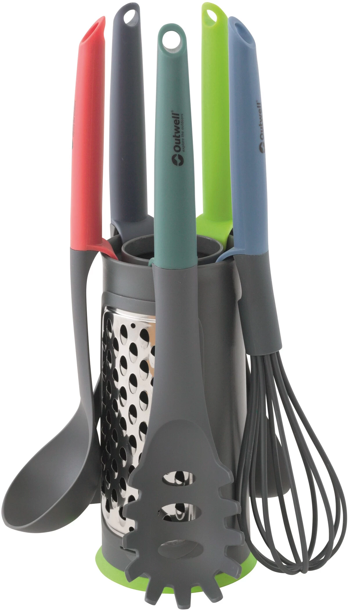 Set van diverse keukenbenodigdheden, de rasp functioneert ook als een standaard.