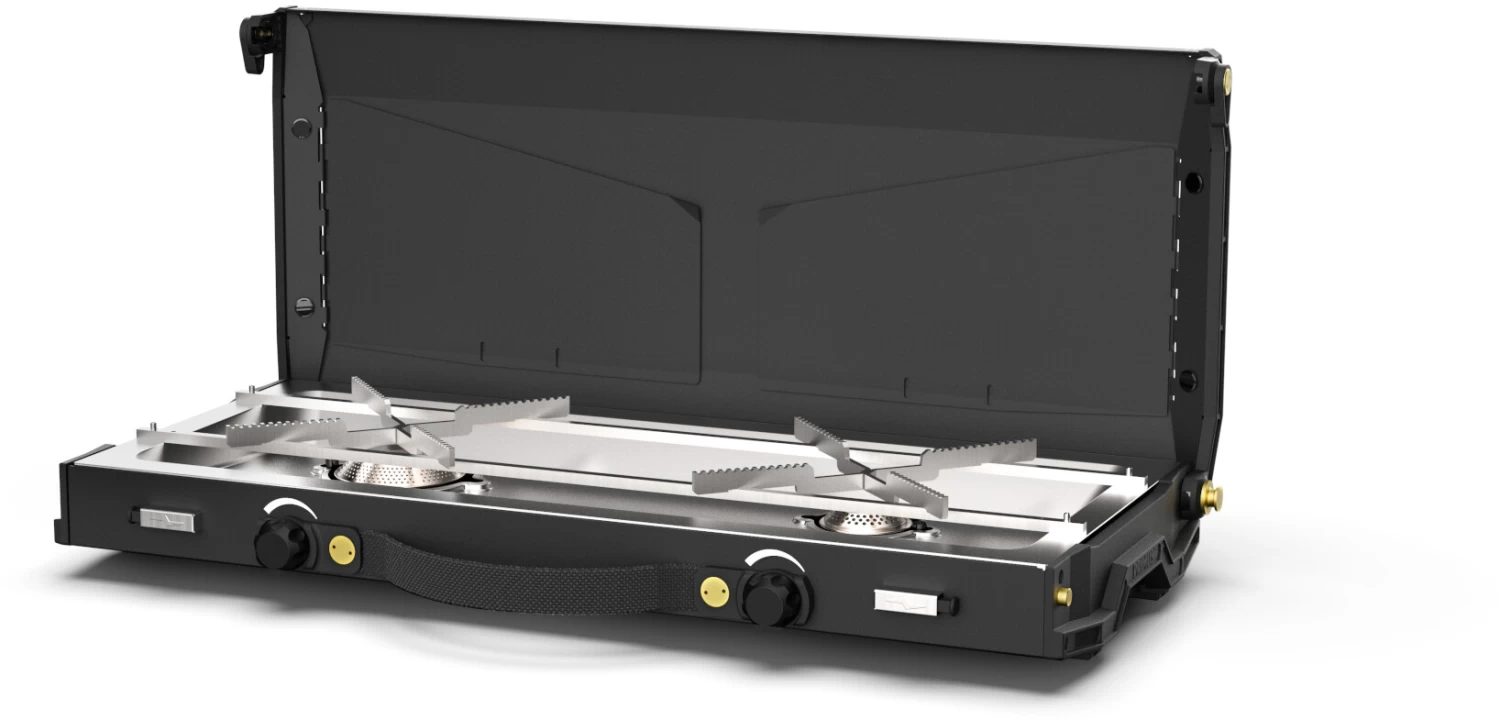 Dit slanke 2-pits kooktoestel is ontworpen om een revolutie te ontketenen in het gemeenschappelijk buiten koken. Geïnspireerd door kampvuren en hun aantrekkingskracht op mensen – een 360° ontmoetingsplaats waarrond je met vrienden kan samenkomen en drinken en eten. De Alike is meer dan alleen een fornuis. Dankzij het afneembare deksel kunnen groepen zich rond het fornuis verzamelen en samen koken en samenwerken. Het deksel met eiken details kan worden gebruikt als onderzetter voor pannen die geen verdere warmte-inbreng nodig hebben. Het grote kookgedeelte biedt “meer”: grotere potten, pannen en meer koks. De twee branders bieden verschillende vlamopties – een brede en een smallere, beide met een nauwkeurige vlamregeling die aan de behoeften van alle kookstijlen voldoet. Het geïntegreerde windscherm zorgt voor een gelijkmatige vlam. De slanke gegoten aluminium behuizing met eikenhouten en messing details is een echte blikvanger op elke camping en zal uw trouwe metgezel zijn voor de komende jaren. De interne potsteunen en lekbak kunnen gemakkelijk worden verwijderd voor reiniging. Gewoon sluiten om op te bergen – deze slanke kookplaat kan bijna overal worden opgeborgen.