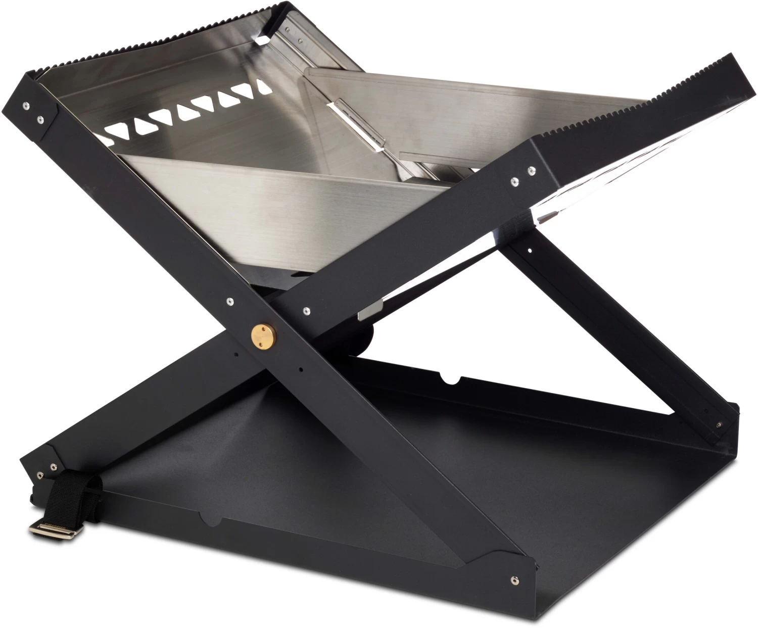 De Kamoto is een draagbare vuurschaal voor hout of houtskool, die geen sporen van een kampvuur achterlaat. Gemaakt van gepoedercoat staal, gemakkelijk op te vouwen en te vervoeren. In een mum van tijd geopend en binnen enkele seconden klaar voor gebruik. De eigenlijke vuurschaal en het windscherm aan de zijkanten van de Kamoto zijn van roestvrij staal. De luchtinlaat aan de onderzijde maakt een effectieve verbranding mogelijk, terwijl de aslaag onder de vuurschaal de vloer beschermt tegen brandschade.