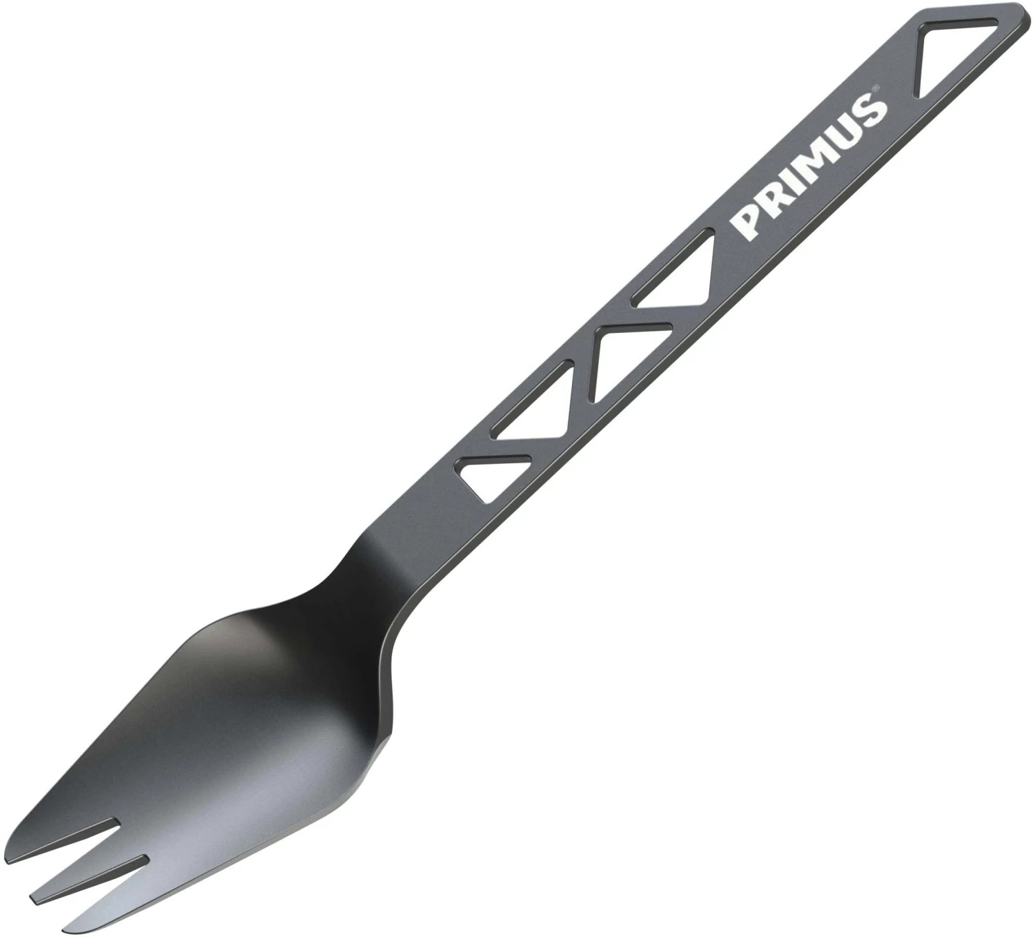 Spork van hoogwaardig, hard geanodiseerd aluminium met geïntegreerd mes voor iets “stevigere” maaltijden. De combinatie van lepel, vork en mes is geschikt voor zowel koken als eten. In principe is de aluminium TrailSpork in principe voldoende als enige eetinstrument.