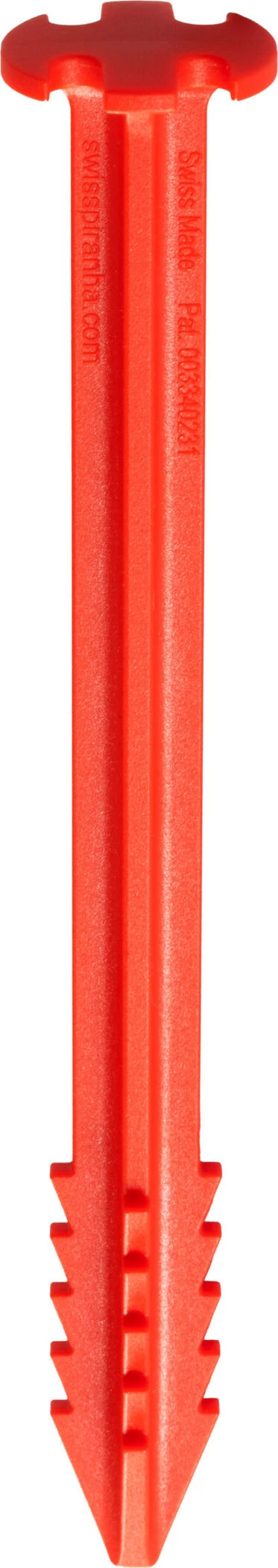 De tentharingen van SwissPiranha zijn gemaakt van de hoogwaardige kunststof PiranhaNT en bieden aanzienlijke voordelen ten opzichte van conventionele haringen: Ze zijn ultralicht, schokbestendig en superveilig. Door hun conische vorm zijn ze gemakkelijk in te slaan, terwijl een x-vormige dwarsdoorsnede met een zaagtandprofiel zorgt voor een stevige grip in een grote verscheidenheid van bodems. De platte kop drukt het substraat samen en maximaliseert de houdkracht. Inkepingen houden de tentlijnen betrouwbaar op hun plaats en zorgen voor de beste verankering. De hoogwaardige PiranhaNT kunststof is bestand tegen slagen met een hamer, bijl of steen – er zijn geen scherpe randen die het tentdoek kunnen beschadigen. Aangezien de tentharingen van SwissPiranha volledig in de grond verzonken zijn onder een hoek van 90°, is het risico op verwondingen tot nul gereduceerd. Vuile knijpers kunnen in de vaatwasmachine worden gereinigd. Gebogen RT-ringen kunnen hun oorspronkelijke vorm terugkrijgen na 5 minuten bij 160°C in de oven.
